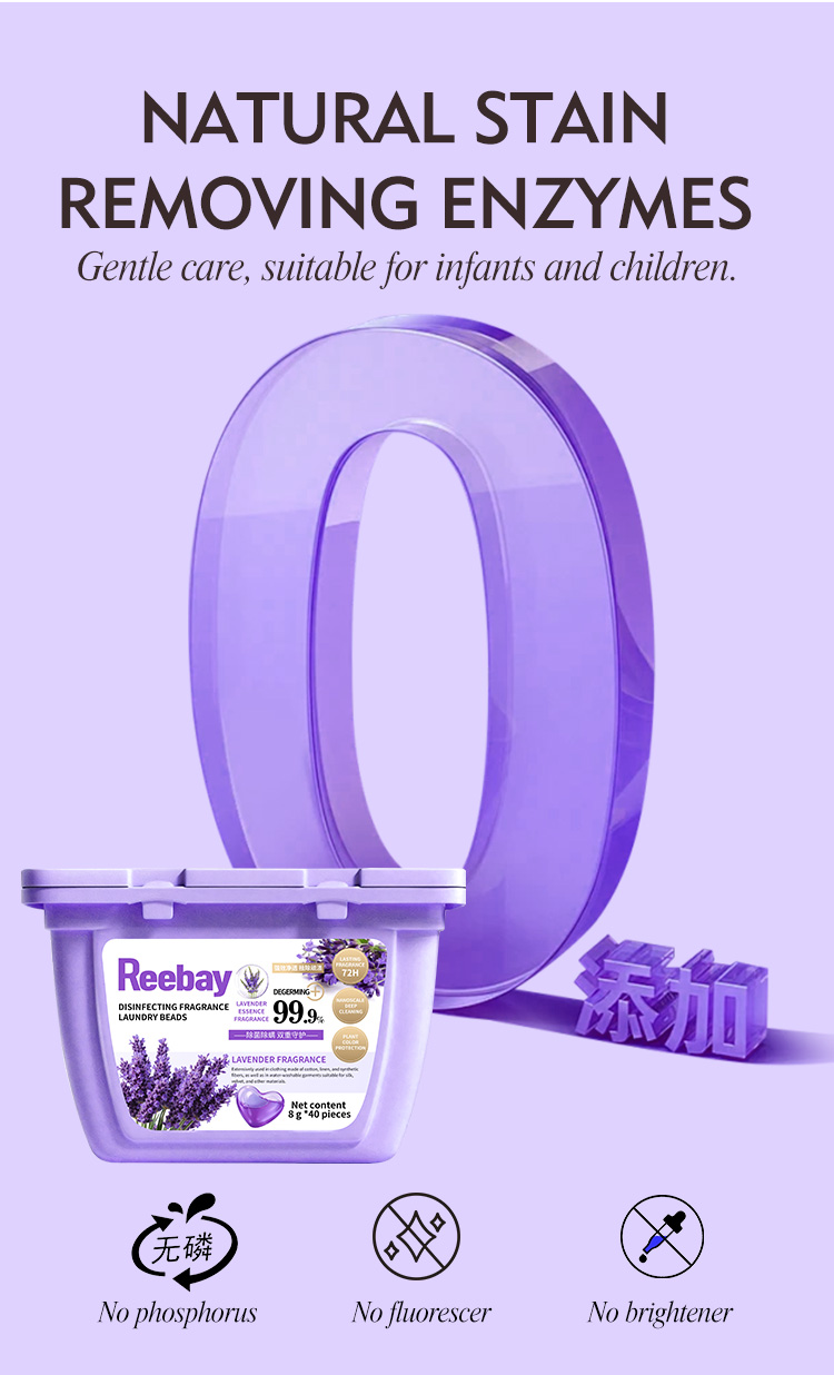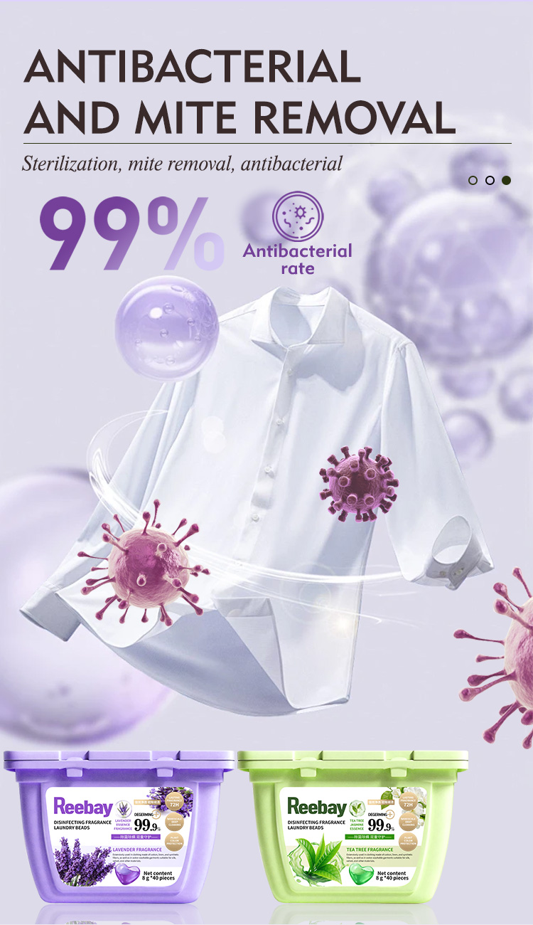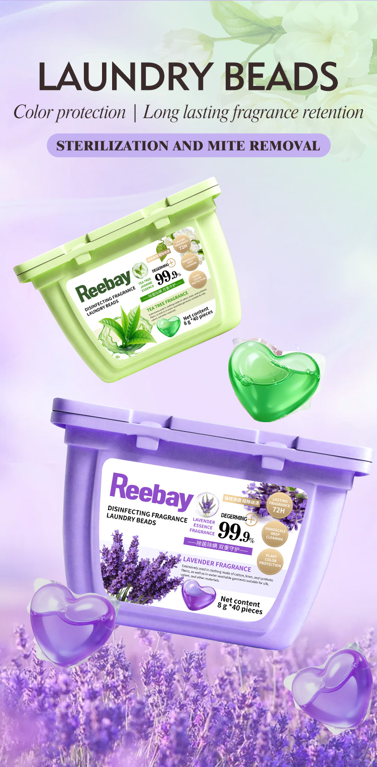 Antibacterial fragrance laundry beads with tea tree and lavender scents are available. They can deeply remove stubborn stains and support customization.