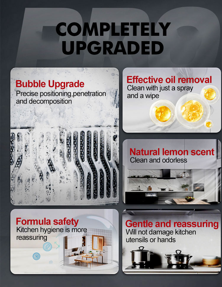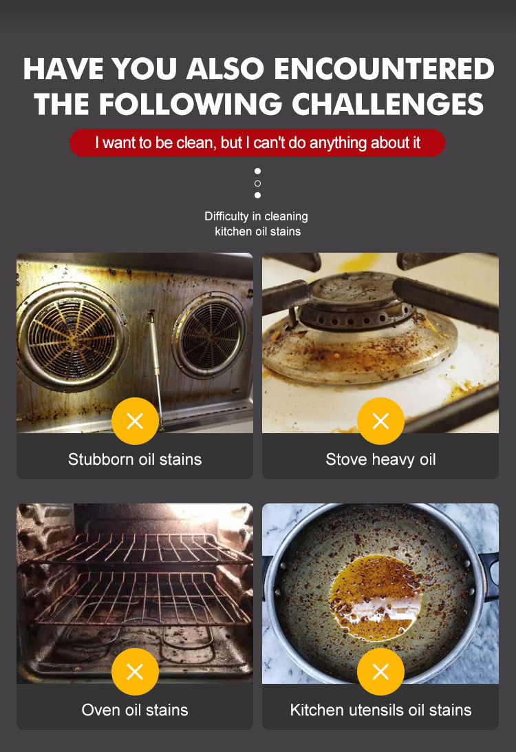 Oil Stain Remover Heavy Grease Cleaner for Kitchens Powerful Stain Removal Range Hood Cleaning Agent Freshens and Removes Scale Stains Fine-Textured Foam Type