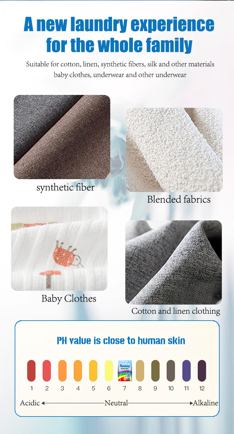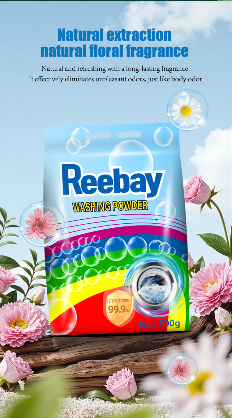 Reebay Powerful cleaning laundry powder with plant-based color protection, natural fragrance, antibacterial properties, easy to wash, suitable for the whole family.